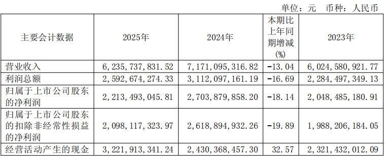 4月17日,伟明环保发布2025年年度报告。公司全年实现营业收入62.36亿元,较上年同期下降13.04%;归属于上市公司股东的净利润为22.13亿元,较上年同期下降18.14%;扣除非经常性损益后的归属于上市公司股东的净利润为20.98亿元,同比下降19.89%。基本每股收益为1.31元,加权平均净资产收益率为15.72%,较上年同期减少6.52个百分点。
