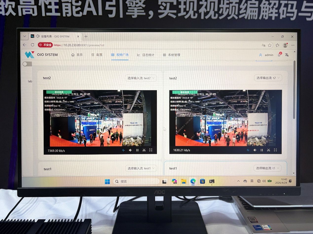 在镕铭微电子的展台上,一场实时Demo吸引了大量专业观众驻足:多路高清视频流通过OJO智能视频转码平台,码率压缩4-10倍而画质视觉无损;与此同时,AI引擎能够实时识别出画面中的人、车、非机动车,输出结构化信息;协议在ONVIF与GB28181之间一键切换,动态水印同步嵌入。
