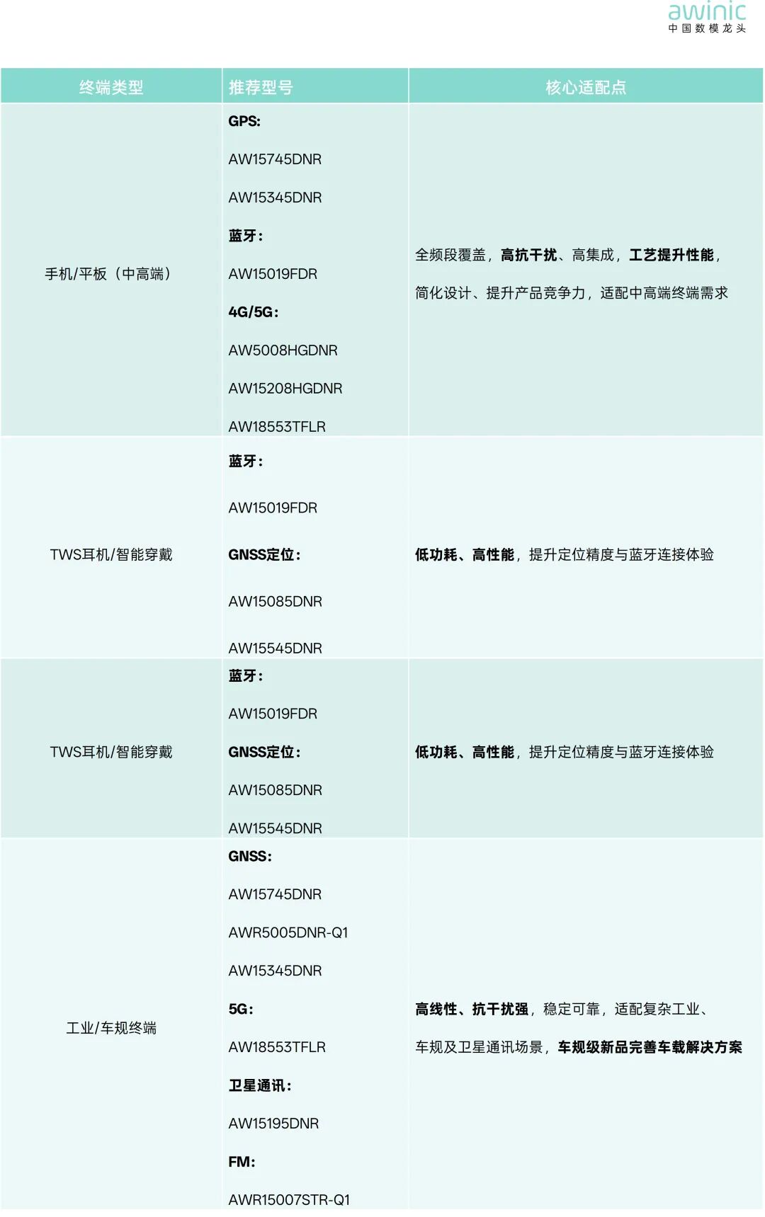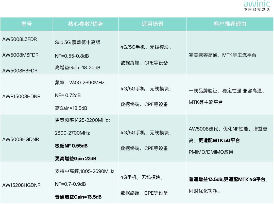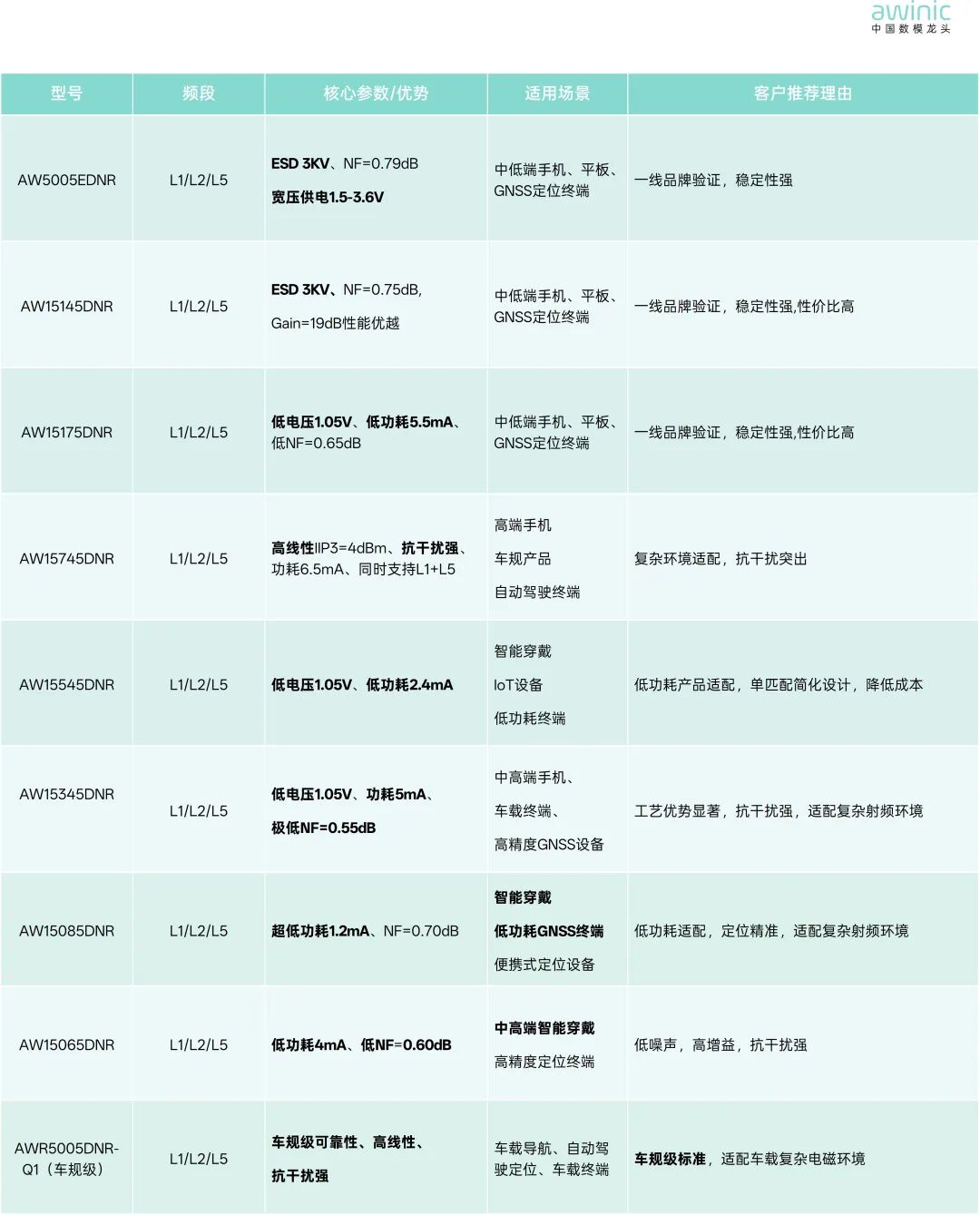 二、  艾为电子LNA全系列产品矩阵:按场景精准选型
