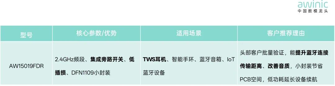 3.   蓝牙LNA:TWS/穿戴专属(高集成、低功耗)